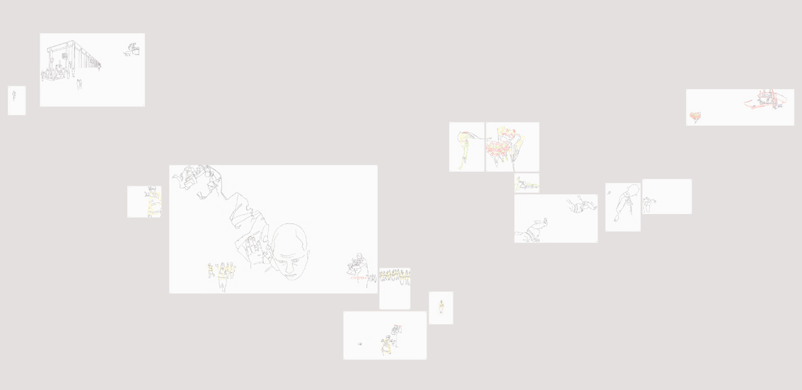 © patrick borchers - london - 2006 - graphit- buntstift auf zeichenpapier - 14 blatt - originalmaß ca.450x180cm